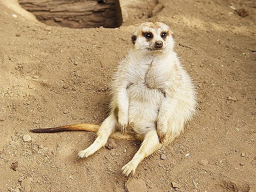 Absurdly relaxed meerkat. Source.